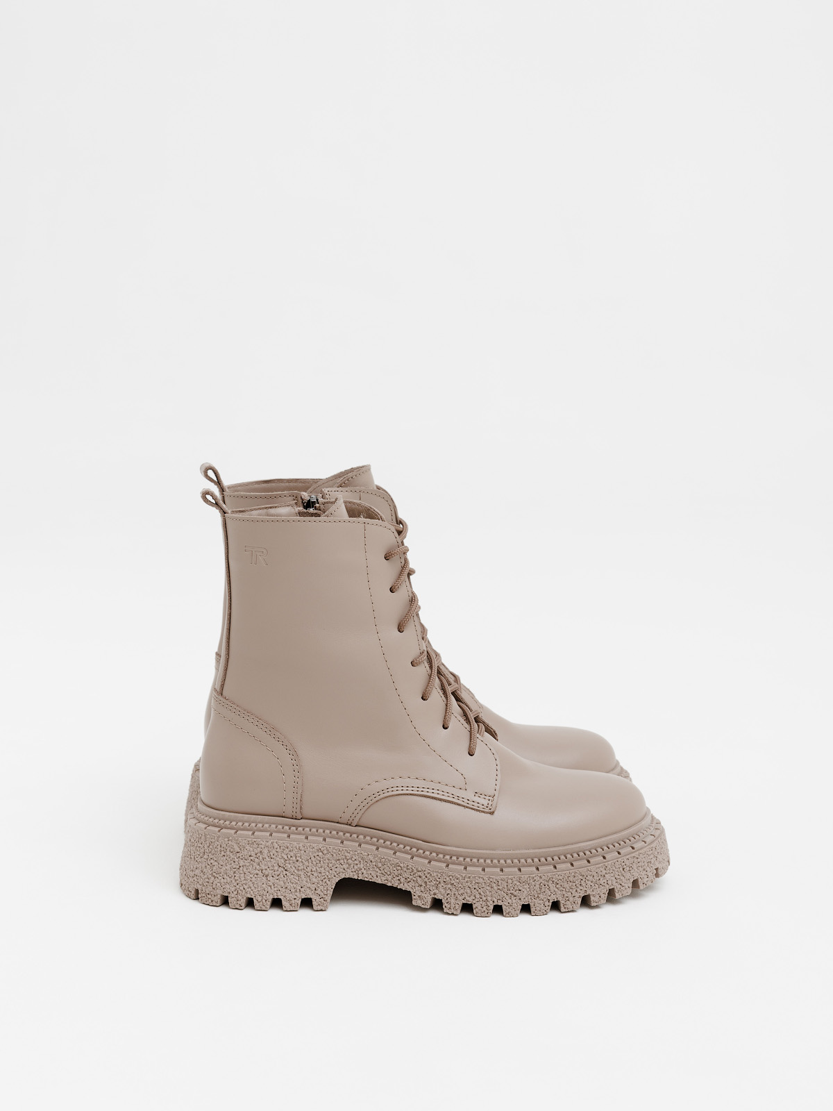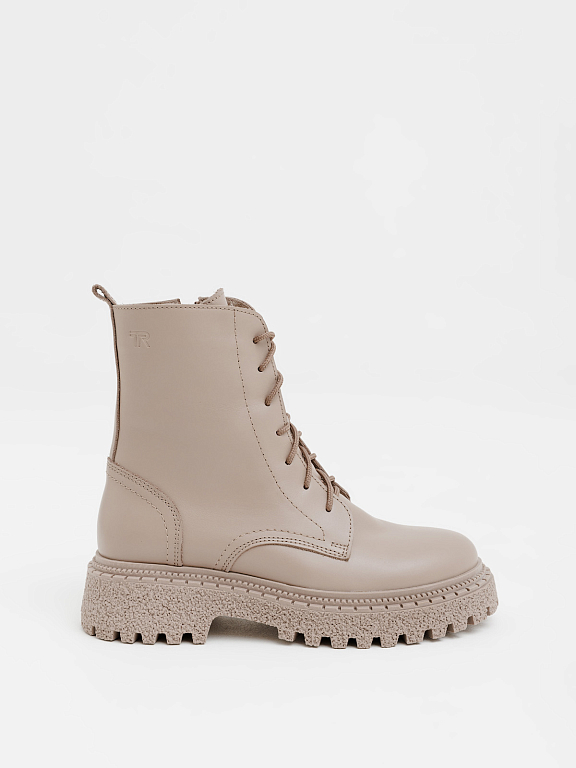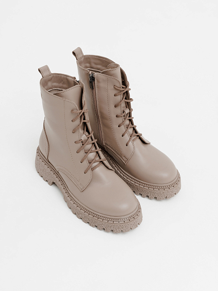 Массивная подошва придаёт образу современное звучание и визуально делает ноги стройнее, а сочетание шнуровки и боковой молнии обеспечивает удобство и надёжную фиксацию.