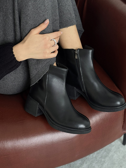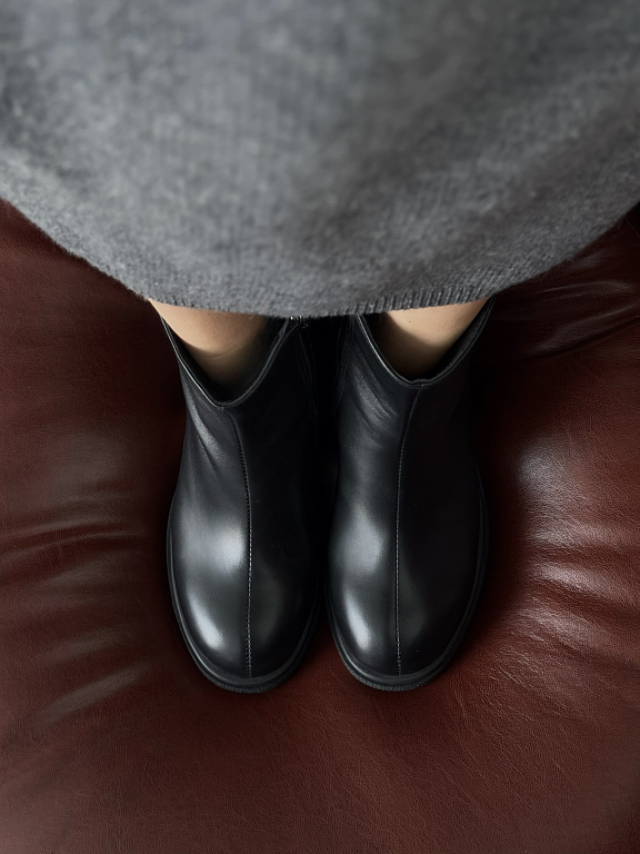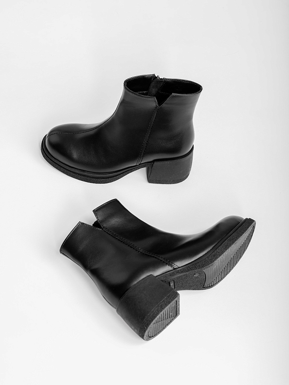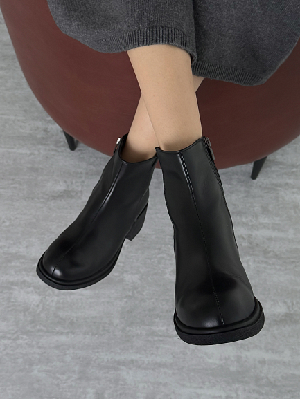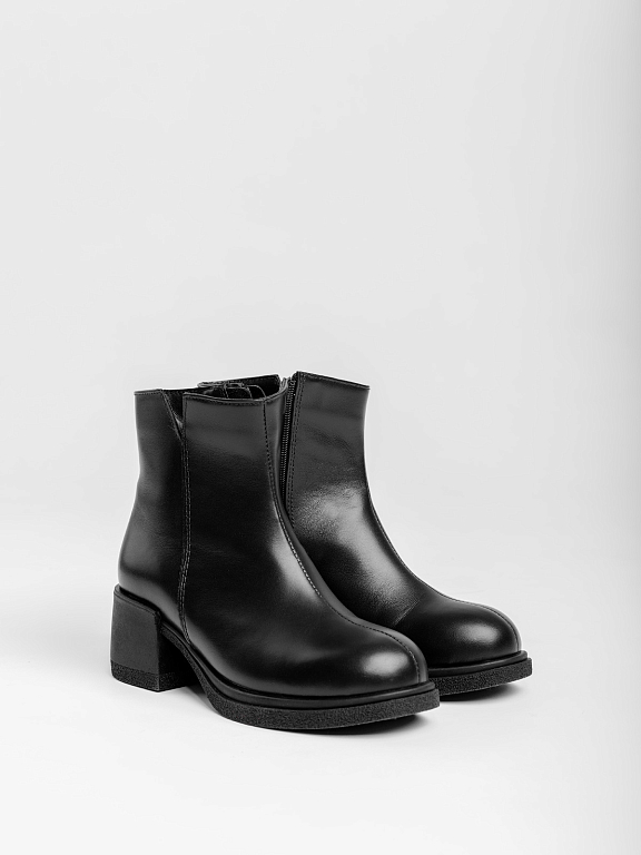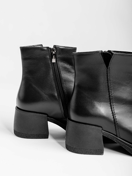 Материал: 100% натуральная кожа Материал подклада: байка Высота ботинка (без учета подошвы): 13 см Высота подошвы: 2 см Высота каблука: 5.5 см Сезон: демисезонные