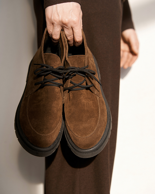 Практичная база для повседневного гардероба. Низкие ботинки на шнуровке сочетают в себе лаконичный дизайн и максимальный комфорт. Классическая шнуровка позволяет точно отрегулировать посадку по ноге, обеспечивая удобство на протяжении всего дня.