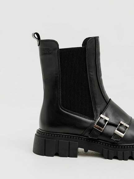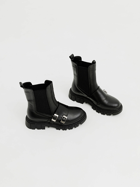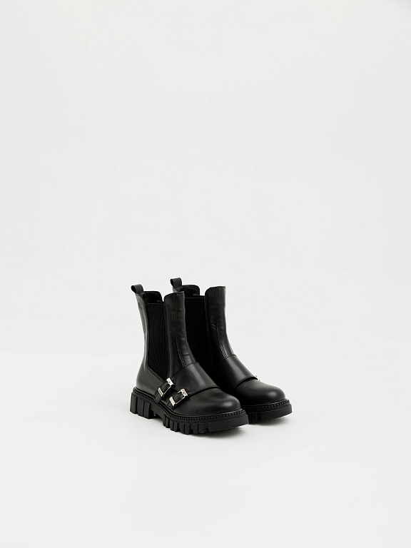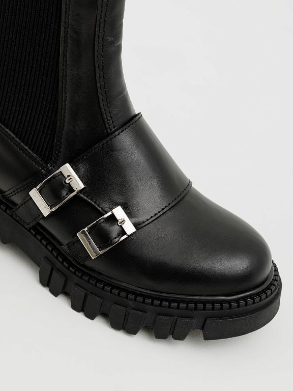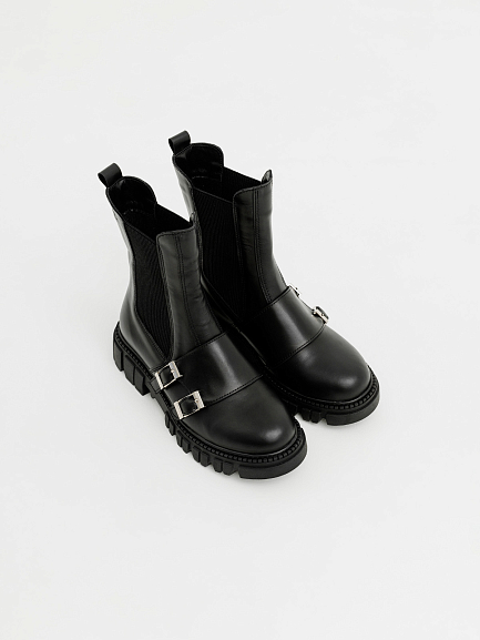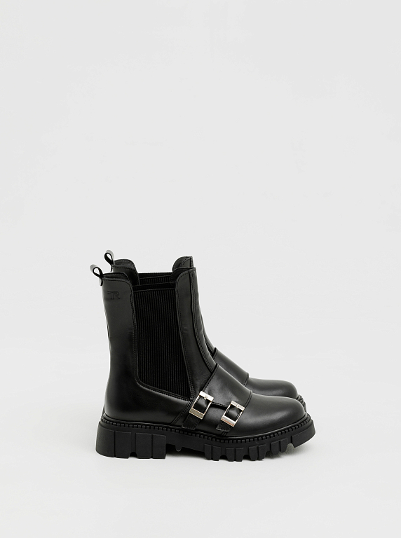 Тракторная подошва обеспечивает устойчивость и комфорт даже при длительных прогулках, а эластичные вставки сохраняют удобство классических челси. Эта модель гармонично впишется в образы в стиле casual, подчеркнёт дерзкость total black и добавит контраста к романтичным платьям.