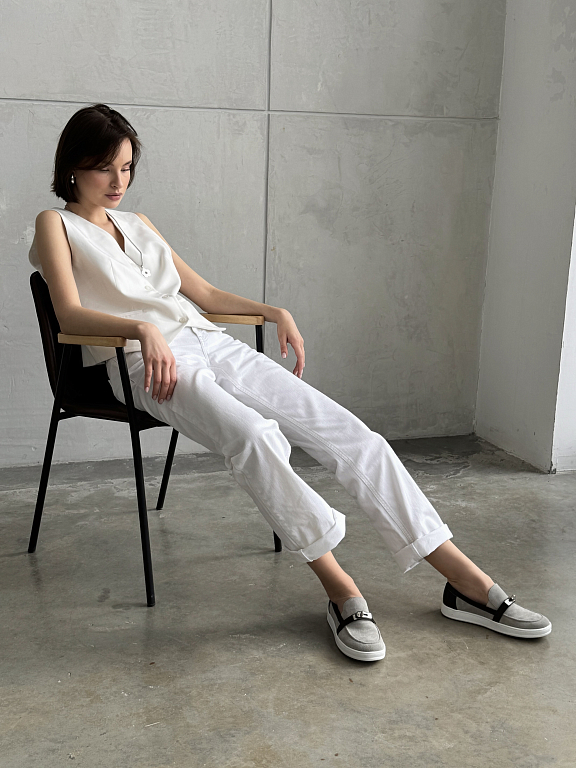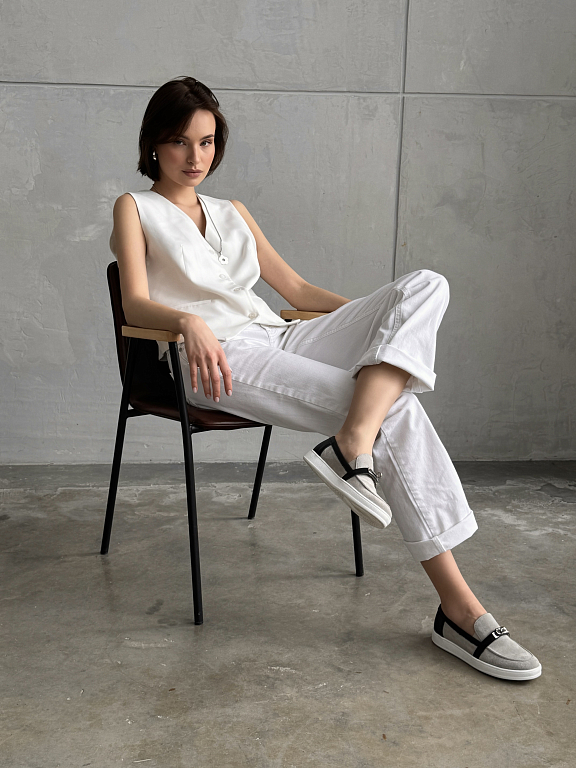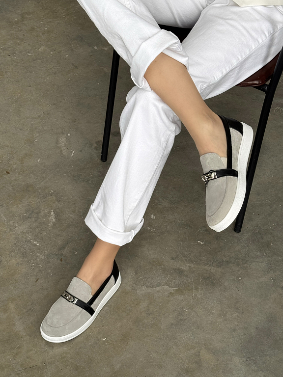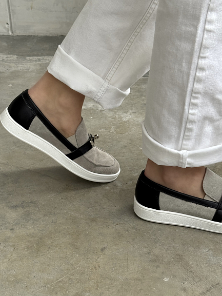 Эти слипоны — больше, чем просто удобная обувь. Минималистичный силуэт дополняет выразительная деталь — металлический замок, который задаёт акцент и добавляет дерзкости даже самому лаконичному образу.