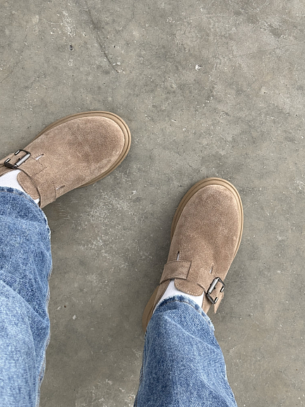 Модель с закруглённым мысом выполнена из натуральной замши, с мягкой стелькой .