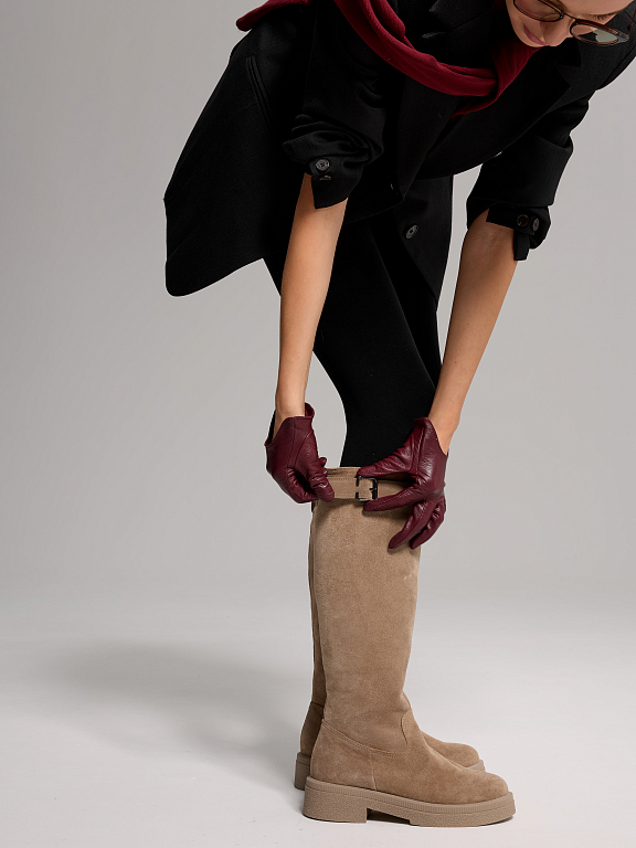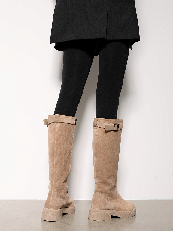 Элегантные и практичные женские сапоги на замке — это идеальный вариант для прохладного сезона. Лаконичный силуэт дополнен аккуратным ремешком с пряжкой в верхней части, который подчеркивает стройность ноги и добавляет образу утончённости.