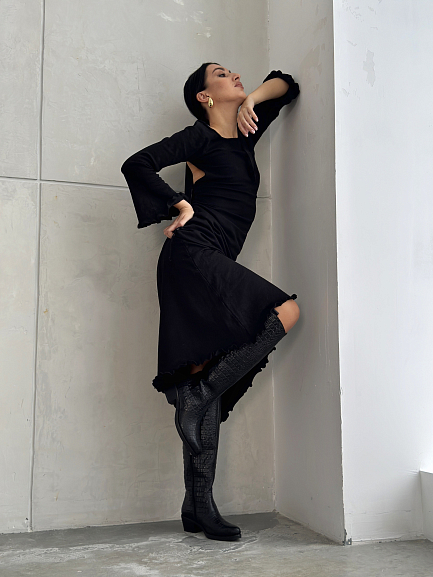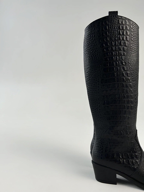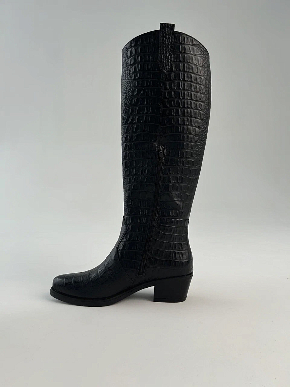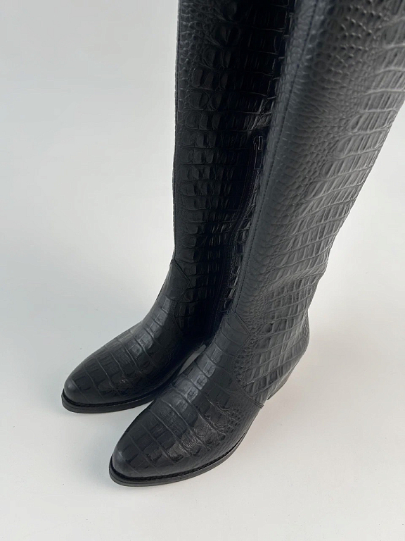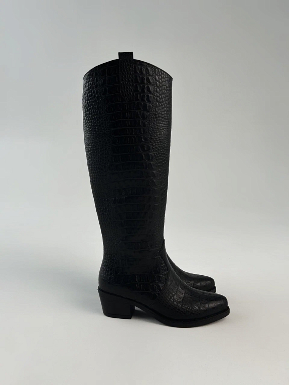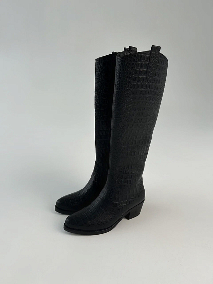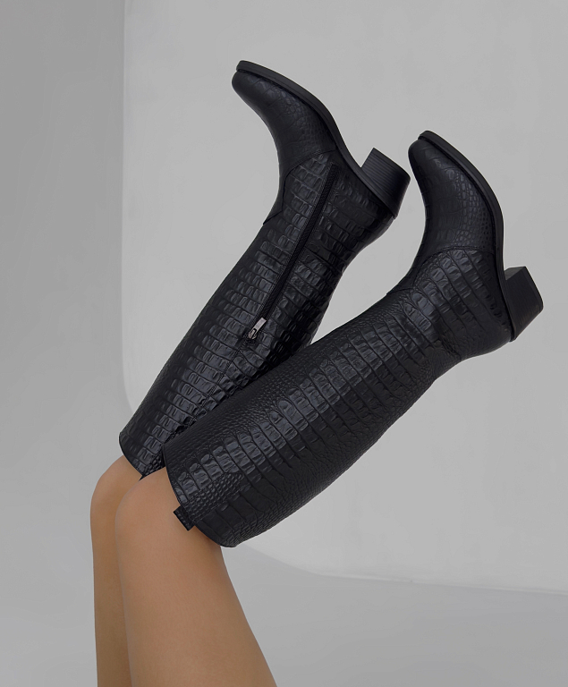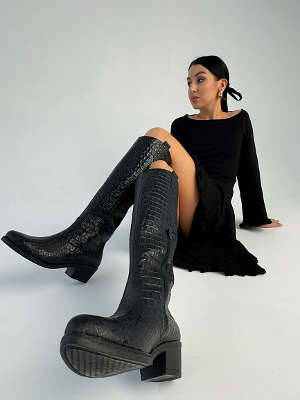 Материал: 100% натуральная кожа Материал подклада: кожа/ байка Высота ботинка (без учета подошвы): 42 см Высота подошвы: 1 см Высота каблука: 5.5 см Сезон: лето/ демисезонные (от +10 до-15)