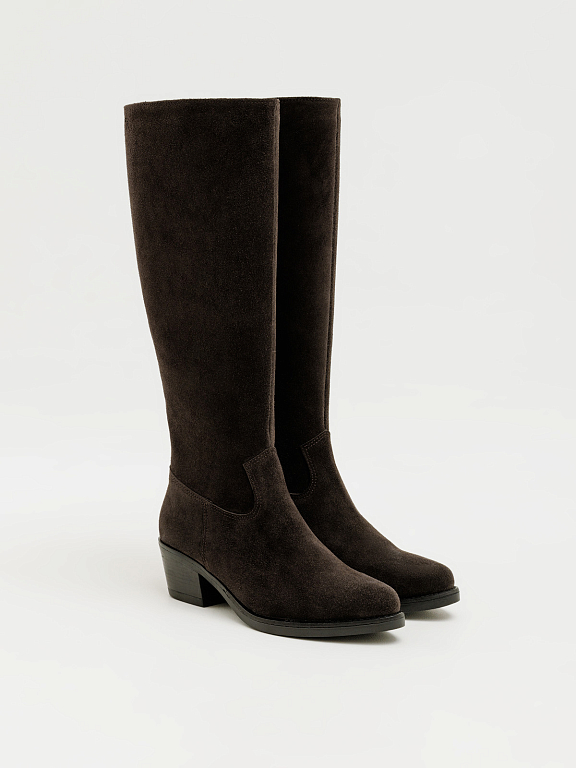 Характер и стиль в сдержанном исполнении. Сапоги на казачьей подошве сочетают узнаваемую форму каблука с прямым, лаконичным верхом, создавая современный и сбалансированный силуэт. Такая модель выглядит выразительно, но остаётся универсальной для повседневных образов.
