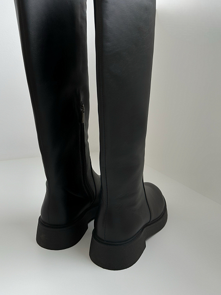 Материал: лаковая кожа Материал подклада: байка/еврошерсть (на выбор) Высота ботинка (без учета подошвы): 41 см Высота подошвы: 2,5 см Высота каблука: 4 см Сезон: демисезонные (от +10 до-15)/ зима до -30°С
